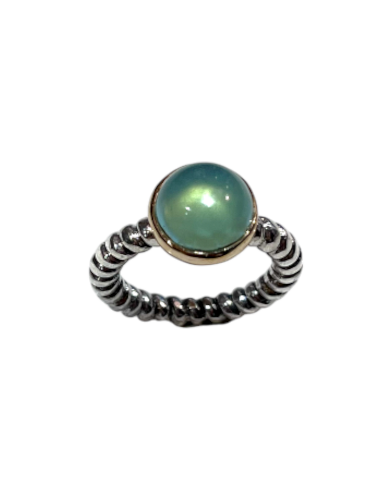 Anello realizzato in argento 925% e Bronzo, impreziosito da una pietra centrale taglio cabochon.