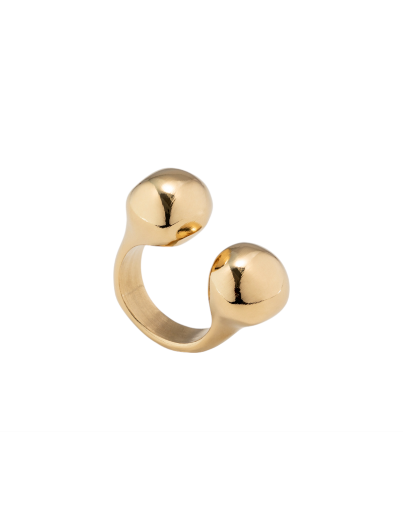 Anello aperto nella parte centrale e rifinito da due sfere con galvanica in oro giallo.