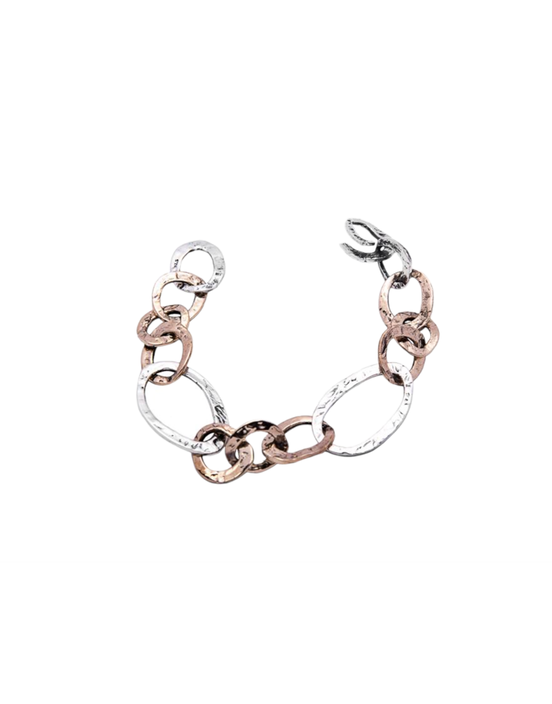 Bracciale con anelli ad incastro in argento 925 e bronzo.