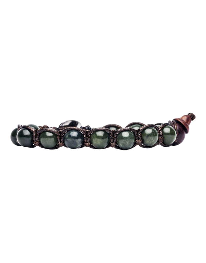 Bracciale unisex originale Tibetano Tamashii® realizzato con pietra naturale Giada e cordoncino marrone.