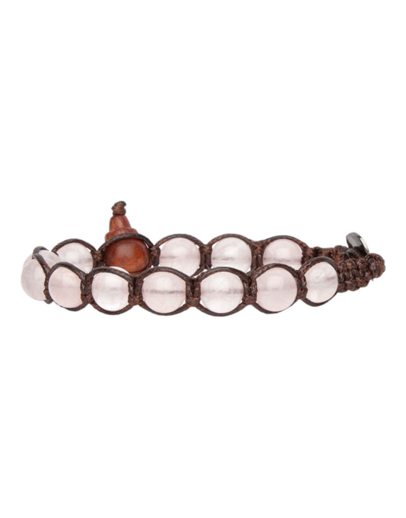 Bracciale unisex originale Tibetano Tamashii® realizzato con pietra naturale Quarzo rosa e cordoncino marrone.