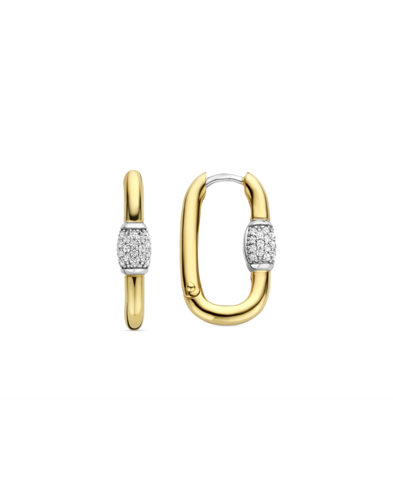 Orecchini in argento 925 con galvanica in oro giallo, Il dettaglio in pavé di pietre di