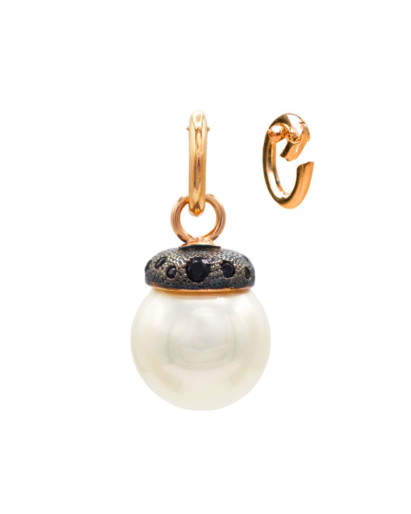 Pendente Perla trattata con polvere di conchiglia e stratificazione di madre perla in due colorazioni con attacco in pavè di zirconi per ciondolo o orecchino.
